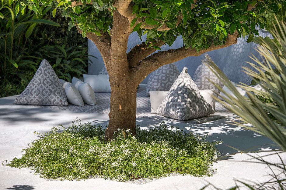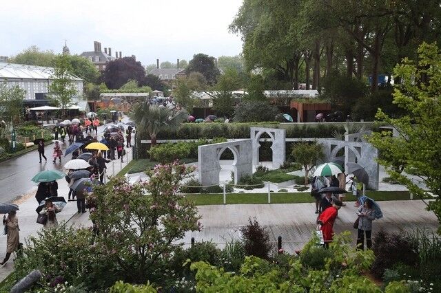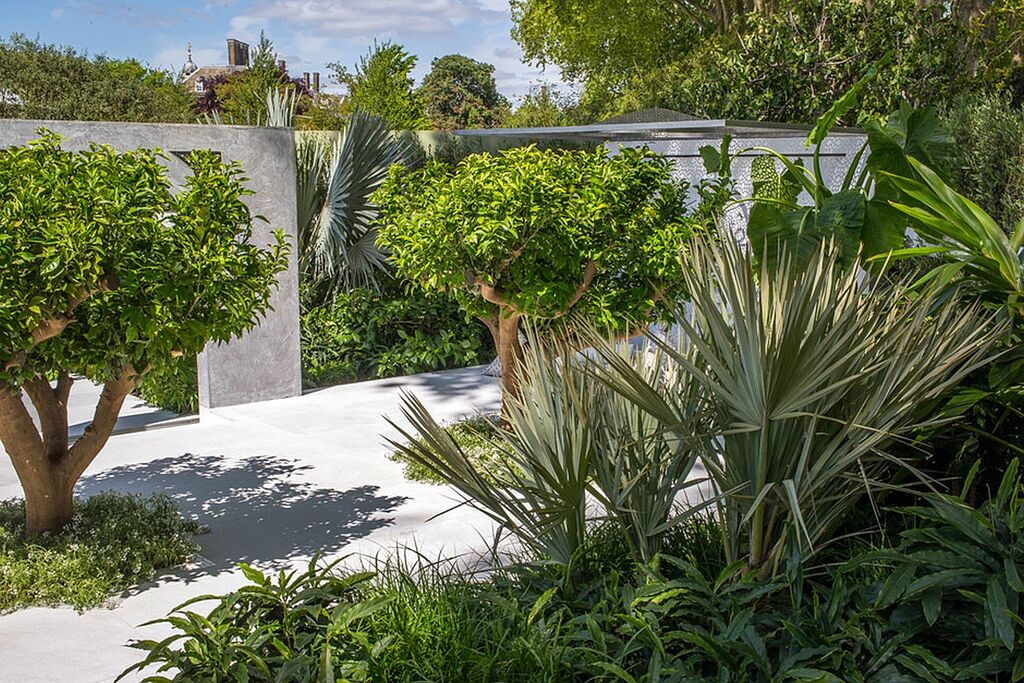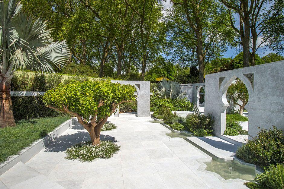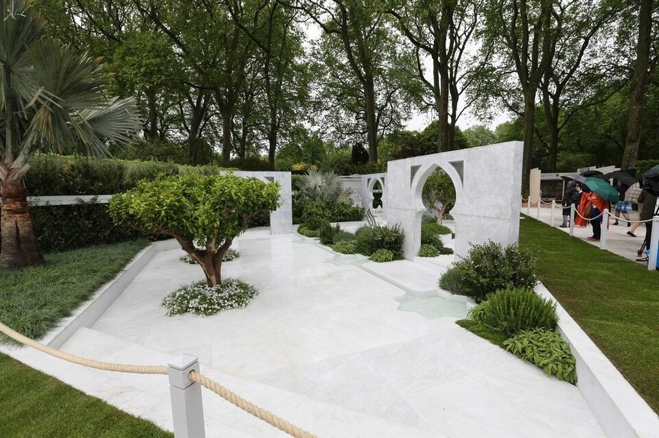 Conception de Kamelia Bin Zaal, fabriqué par The Outdoor Room; photos et vidéo de RHS et Plurimármores.