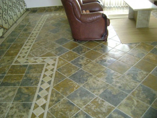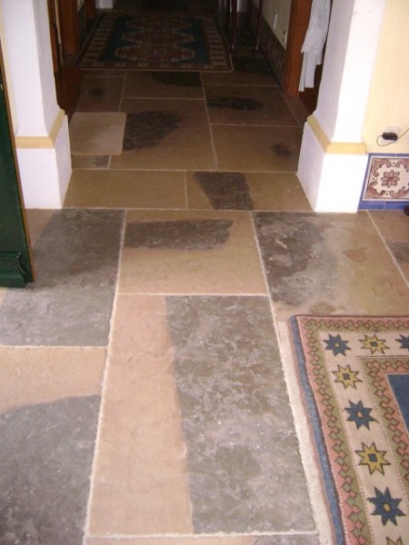 Dallage vieilli avec différents types de pierre qui donnent un look très rustique.