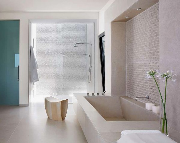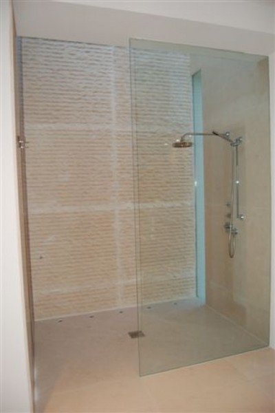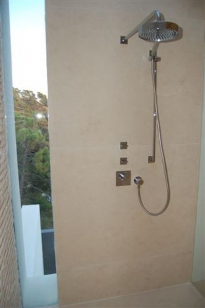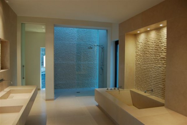 Nous avons utilisé le calcaire portugaise Moleanos Limpo (aussi connu comme Gascogne en dehors du Portugal) pour les extérieurs, intérieurs et imperméabilisé + finition glacier dans la salle de bains.
