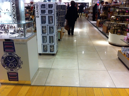 Projet avec Moleanos Limpo pour le magasin Harrods à l’aéroport de Heathrow Angleterre. Carrelages 600x600x15mm avec finition Poli.