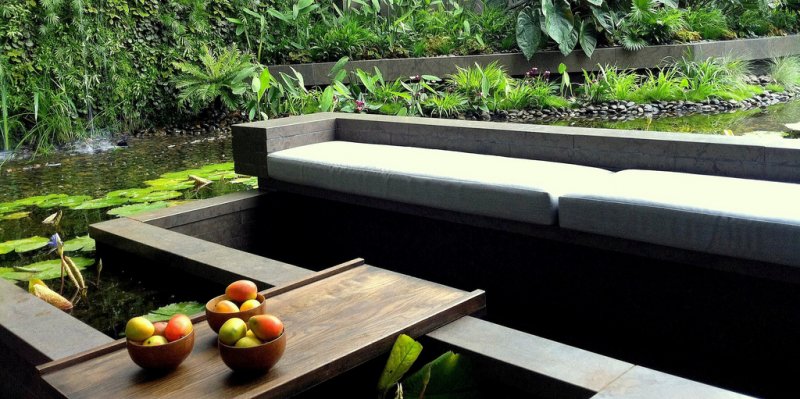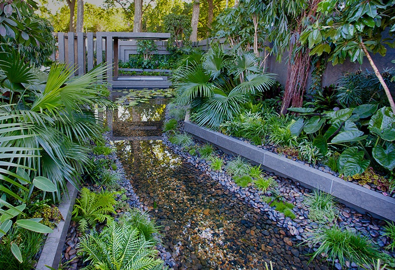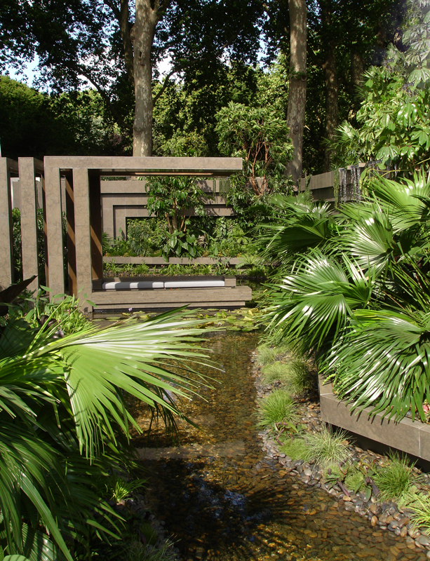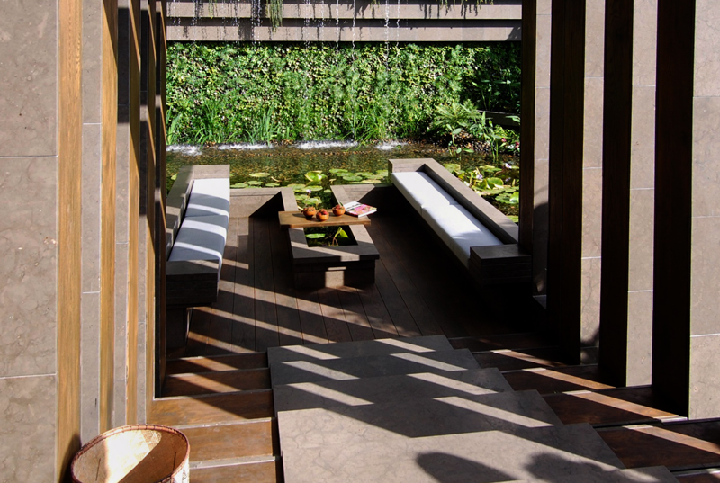 Design et photos par Amphibian Designs, fabriqué par The Outdoor Room, vidéo de RHS.