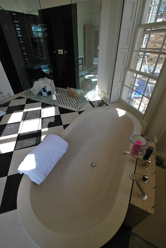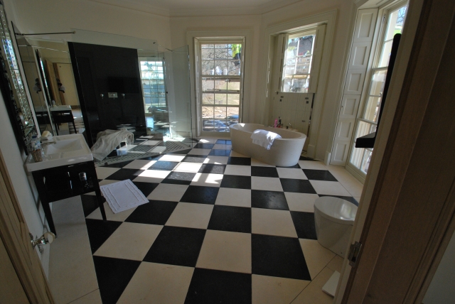 Projet en Pierre Bleu Belge et Moleanos Limpo, compris la baignoire.